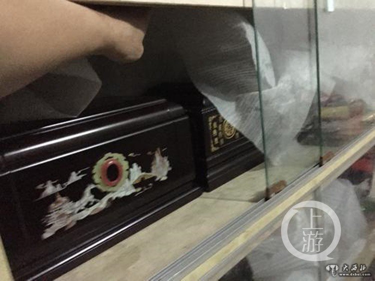 9月5日晚,上游新闻-重庆晨报记者在小区丧葬一条龙经营点发现,房内只有一老太太在家,客厅大柜子里存放着数个空骨灰盒及一些幂币、香烛等丧葬用品。