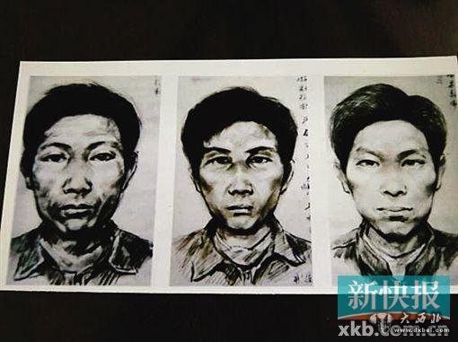 根据三名目击者描述分别画了三幅犯罪嫌疑人的模拟画像。