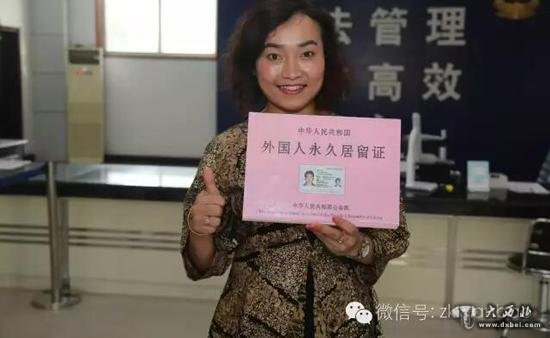 “伊拉”领到她的中华人民共和国外国人永久居留证