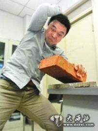 演示“科学的力量”劈砖劈到手红肿