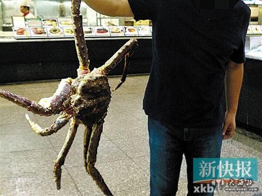 张密一家来自湖北,9月14日晚,她和几名好友来到广州,打算吃一顿大餐后到珠海度假。“我们一共是10个大人5个小孩,最后在朋友的推荐下去了渔民新村。”张密说,一行人点了不少菜,其中的主菜是一只重达9.6斤的帝王蟹,价格约4000元。