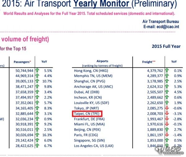《2015航空运输年度监测报告》,其中CN代表“中华人民共和国”,图表中出现的中国城市有香港、上海、台北,后面都被ICAO标注了CN