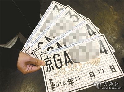 代办人告诉北青报记者,如果是自己去车管所办理临时牌照,最长只能办理有效期21天的。而他们办的单副号牌就可以用30天。