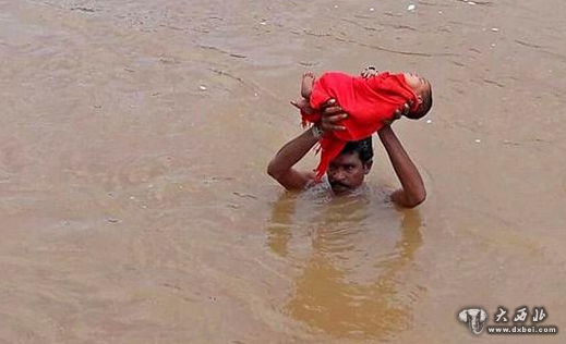 伟大!印度父亲高举女儿去看病 洪流中跋涉2小时