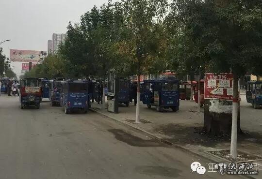 ▲安新汽车站外招揽客人的电动三轮车。 新京报记者 李明 摄