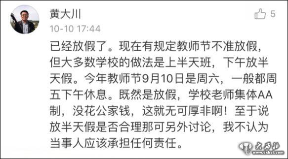 至于老师们为何9月9日周五放假,有网友提到因为9月10日是教师节,一般学校会给老师提前放半天假,这不属于法定假期。