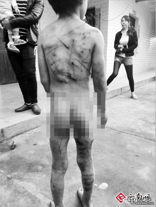 可次日清晨,街坊们看到了这样一幕:小豪呆呆站在离租住处不远的一棵树下,赤裸的身上布满一道道像是鞭子抽打后留下的血痕,右胯部更是淤血严重,在寒风中冷得瑟瑟发抖……“这个娃娃被他爹打得太惨了,太可怜了!”见状,当地村民赶紧拨打了110。