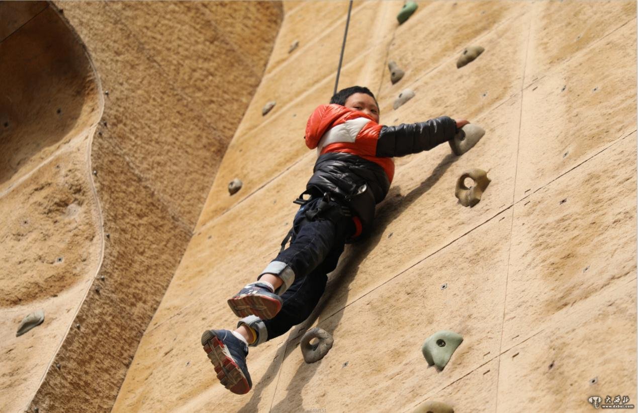 帅气地“飞檐走壁”让王福满看得目瞪口呆,但随后又兴奋地想要跃跃欲试“比比速度”。穿戴好装备后,王福满体验攀岩,一下子就爬到了七八米高,和在家里爬树一样,一点也不害怕。