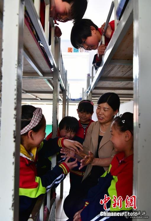 5月4日,河北邢台平乡县东庙小学宿舍,赵秀格与几名学生做游戏。据了解,东庙小学位于平乡县、广宗县、曲周县和邱县四县交界处,因地处偏远师资匮乏。1986年,高中毕业的赵秀格回到母校当上了代课老师,一干就是32年。“乡亲们把孩子交给我,我就不能辜负乡亲们的信任。我不会让每一个孩子在生活中受到一丁点的委屈,我要让他们的童年留下美好的回忆,这是我的责任也是义务。”这是赵秀格常挂在嘴边的一句话。中新社记者翟羽佳摄