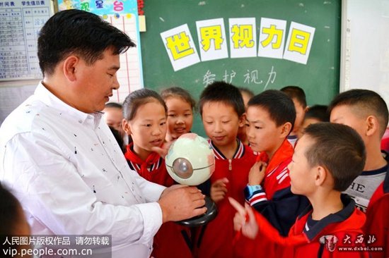 2018年10月10日,小学生正在了解眼球构造。(杨显有/人民图片)