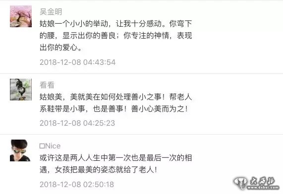 原来,老人因腿脚不便无法系好鞋带,女孩发现后,起身来到老人面前,一言不发地蹲下身子,将老人松开的鞋带重新系好,之后又将老人右脚上的鞋带松开,重新为其绑好,才转身匆匆下车离开。