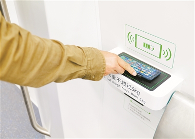 深圳地铁6号线支线车厢内的手机无线充电设施。