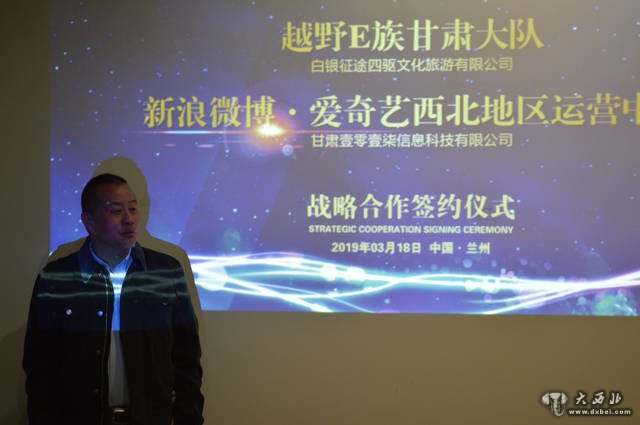 大 西 北 网 讯 3月18日下午,越野E族甘肃大队与新浪微博-爱奇艺西北地区运营中心,在兰州正式签署战略合作协议。双方联手打造“人·车·生活”的线上线下互动平台,完美诠释“路越远,心越近”的越野精神,为发展甘肃的旅游、文化、体育产业新纪元助力!