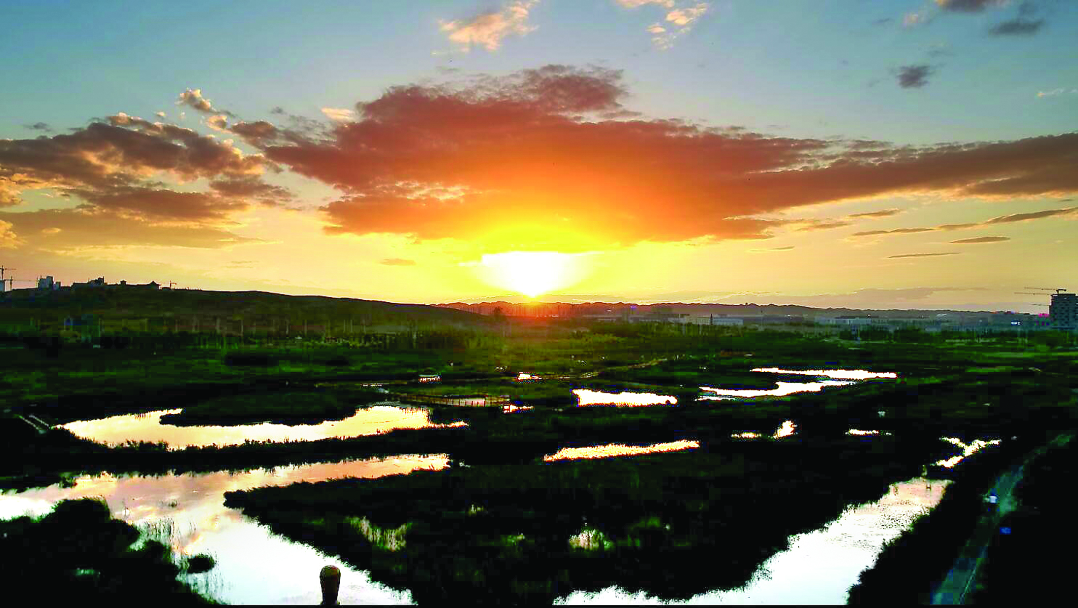 霞映蓝天紫气流。夏花争艳献温柔。凤衔华表悬腰底,龙吐灵光落笔头。 红日媚,白云浮。状元才子出阶州。诗人助力诗千卷,金榜题名喜及秋。