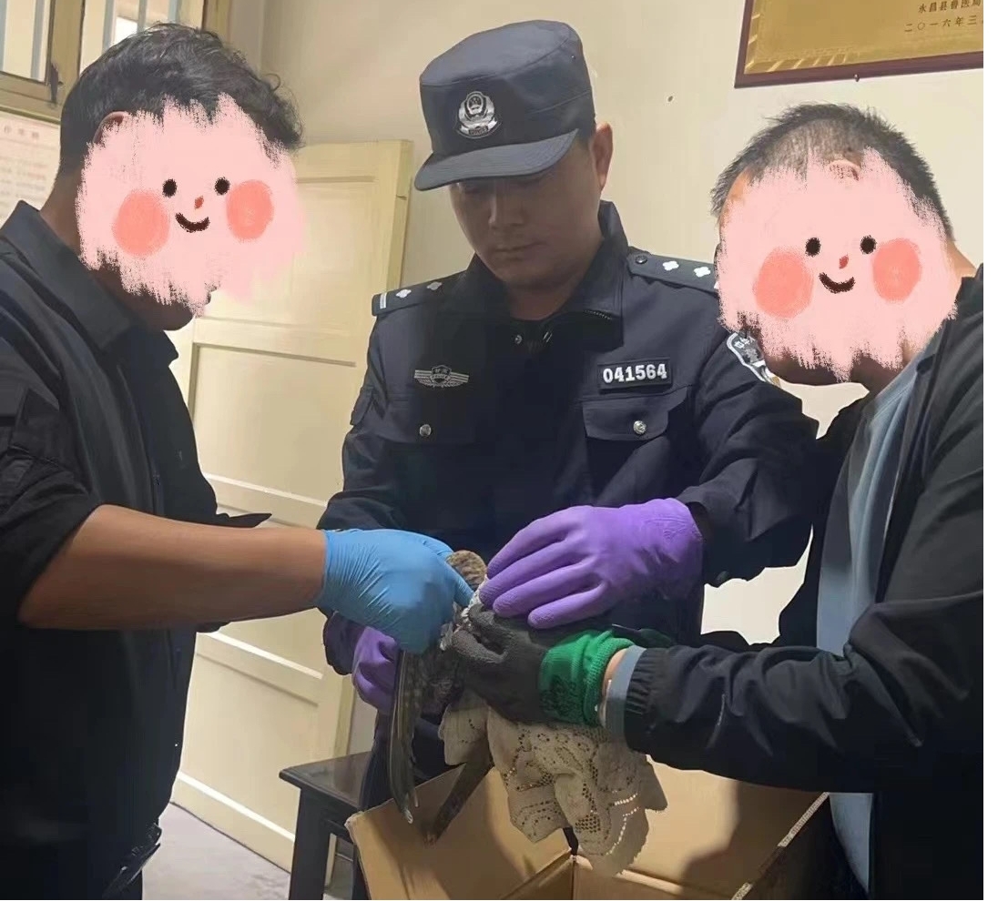 近日,永昌县河西堡镇铁路工作人员在工作中发现一只受伤的“小鸟”,随后将其送至永昌县公安局河西堡派出所,派出所随即联系永昌县公安局森林大队及永昌县动物救助站工作人员。经初步检查,确认此鸟为国家二级保护野生动物游隼,因其右翼骨折,无法正常飞行,为得到专业的救治,民警将游隼移交给救助站工作人员对其进行全面的治疗和护理,待其恢复健康,具备野外生存能力后,将适时放归大自然。