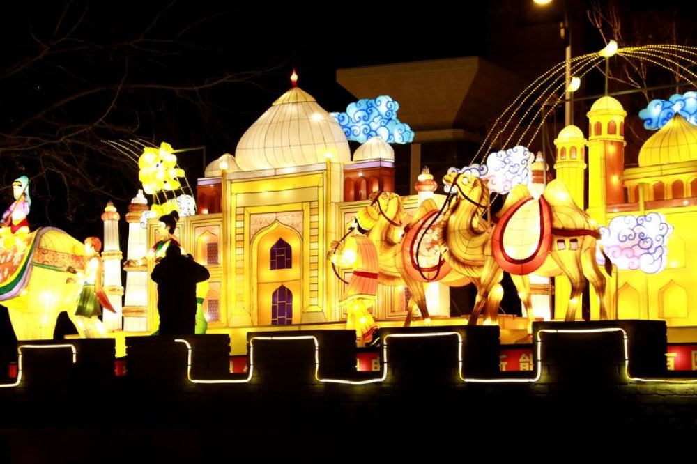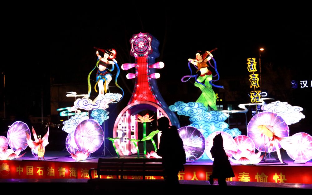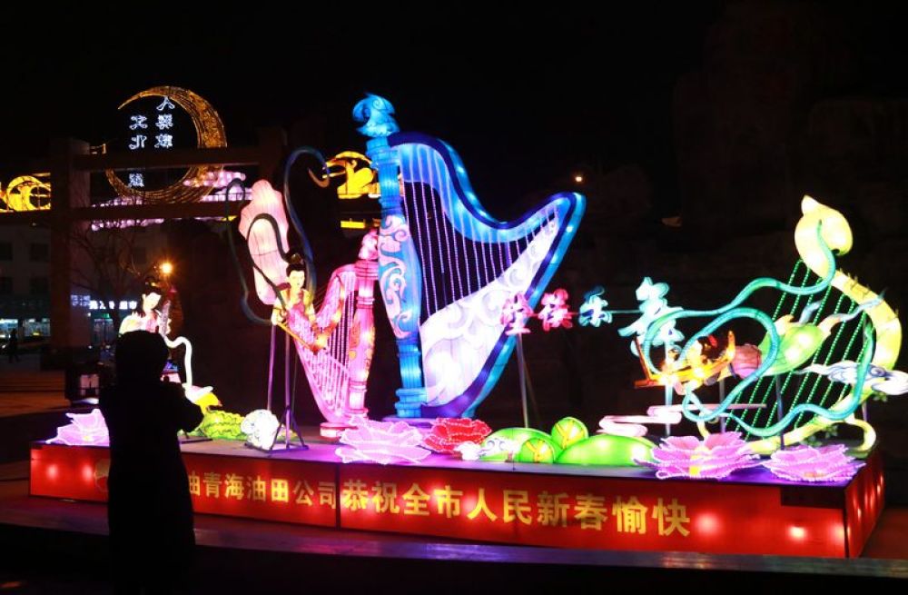 1月17日晚,市民在甘肃省临夏回族自治州临夏市东郊公园观赏灯饰。新华社发(史有东摄)