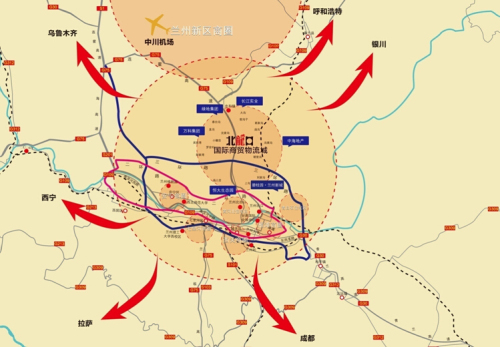 从区位上讲,兰州是大西北的区域中心,是交通、商贸枢纽,而北龙口是连接兰州市区与新区的中心,是大兰州的中心。由此可见,北龙口是大西北区域中心的中心。加之兰州新区是中国向西开放的战略平台,兰州是新丝绸之路黄金段的中心,北龙口成为承接兰州市区与兰州新区、辐射西北、走向欧亚的现代大物流和“通道经济”的典范。