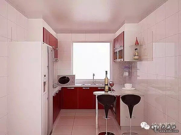一定要事先设计好冰箱的位置,以使“工作三角”设计合理。注意不要让冰箱紧挨着水槽,以免溅上水、漏电等。
