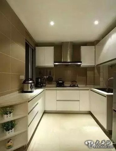最好吊全顶,以便于擦洗。通常用PVC、铝塑扣板吊顶。注意应选用抗老化的材料,因为厨房整天烟熏火燎的,装修材料老化的快。