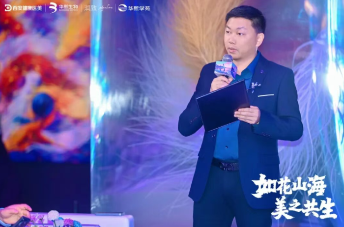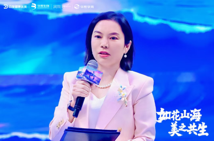 华熙集团董事长、华熙生物董事长兼总裁赵燕在第三届华熙生物·润致百分医生案例大赛全国总决赛的致辞中,向莅临本次大赛的专家评委、晋级决赛的医生朋友们致以诚挚问候,她表示,三年来这项赛事持续成长,如今的相聚既是专业的巅峰汇聚,也是对医美行业创新精神的共同致敬,更要祝贺各位医生在层层角逐中脱颖而出——而本届总决赛特别与贾伟老师的《如花山海》艺术展跨界融合,正是为了传递核心理念:医学的严谨与艺术的美感,本质上都源于对生命本真的探索与敬意,医美从不是技术的复制,而是唤醒每个生命独特之美的艺术过程,这亦是华熙生物坚持举办医生案例大赛的初心。