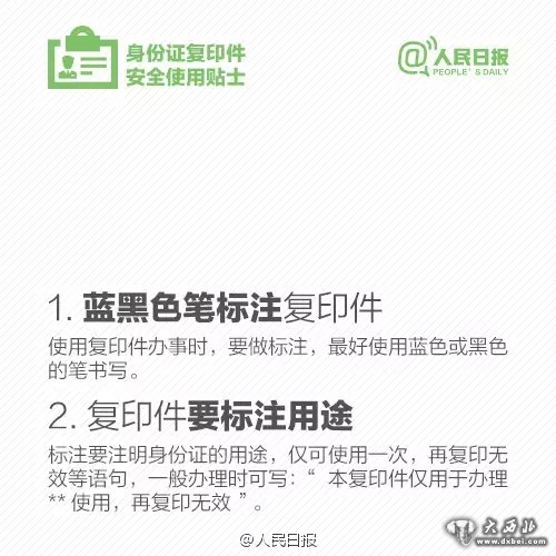 ②身份证复印件要保管好,不用或作废的要处理好,不能随意丢弃;