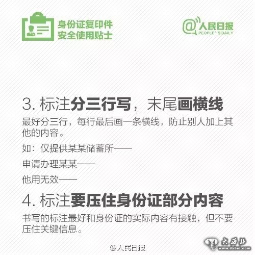 ③身份证复印件要做标注,最好用蓝色或黑色的笔书写;