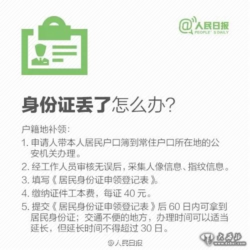 5.向常住户口所在地公安机关申报丢失补领身份证。
