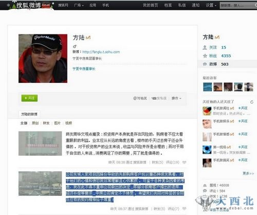 宁夏中房公司董事长方陆通过微博表示:按合同办事