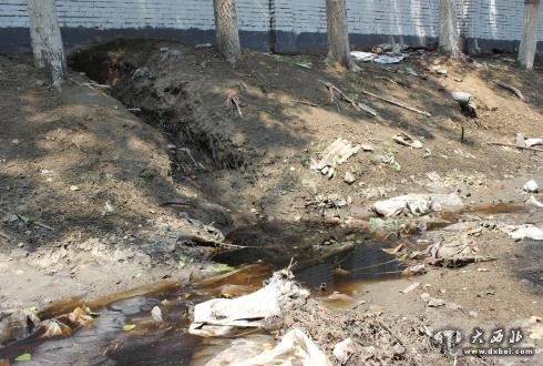 在化工原料烘干过程中,这家化工厂仅东侧就有三个明排管道未加处理,直接将污水排放到院外排水渠内,连绵几百米,任其渗入地下。由于杂质污染物过来,渗透缓慢,表面不同颜色的泡沫飘浮晃动,虽经过北京几天雨天的冲洗,但仍散发着阵阵恶臭。