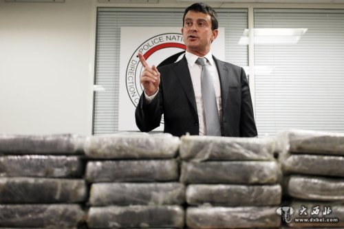 2013年9月21日,曼努埃尔·瓦尔斯在法国南泰尔举行的新闻发布会上展示查获的毒品。
