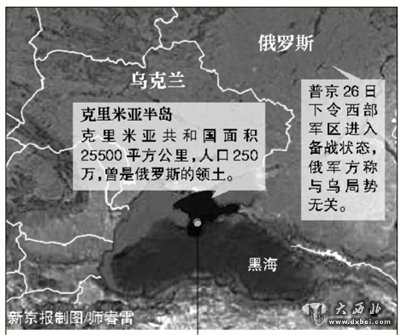 随着总统亚努科维奇失踪并被通缉,乌克兰首都基辅的形势已经完全“倒向”西方,但在乌克兰南部,情况却完全不一样。对乌克兰有着重要战略意义的克里米亚自治共和国议会定于26日召开特别会议,讨论克里米亚目前的形势。议会议长康斯坦丁诺夫称,会议可能讨论克里米亚从乌克兰独立的问题。