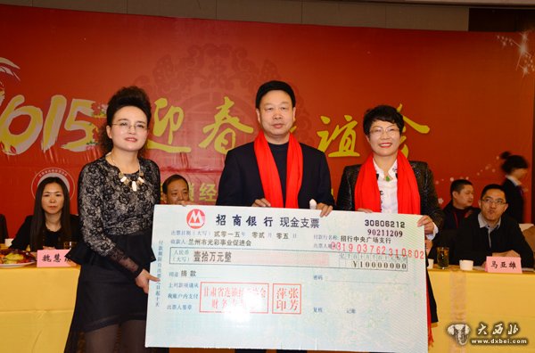 甘肃省连锁经营协会给兰州市光彩事业促进会捐款10万元。 贾笑云 摄