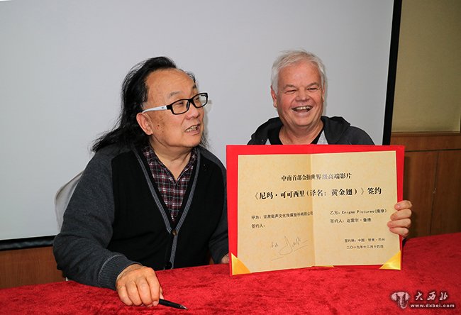 中国南非首部合拍电影《尼玛·可可西里》在兰州饭店签约。 贾笑云 摄
