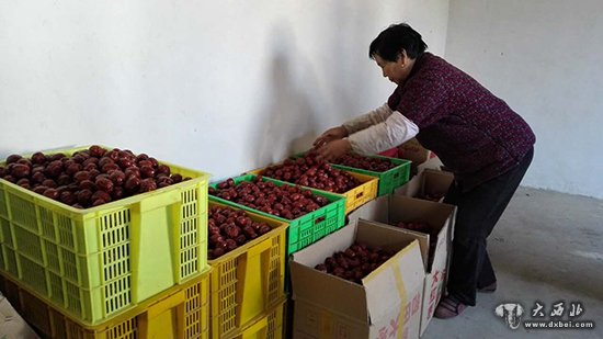 (图为枣农王大妈在装枣)