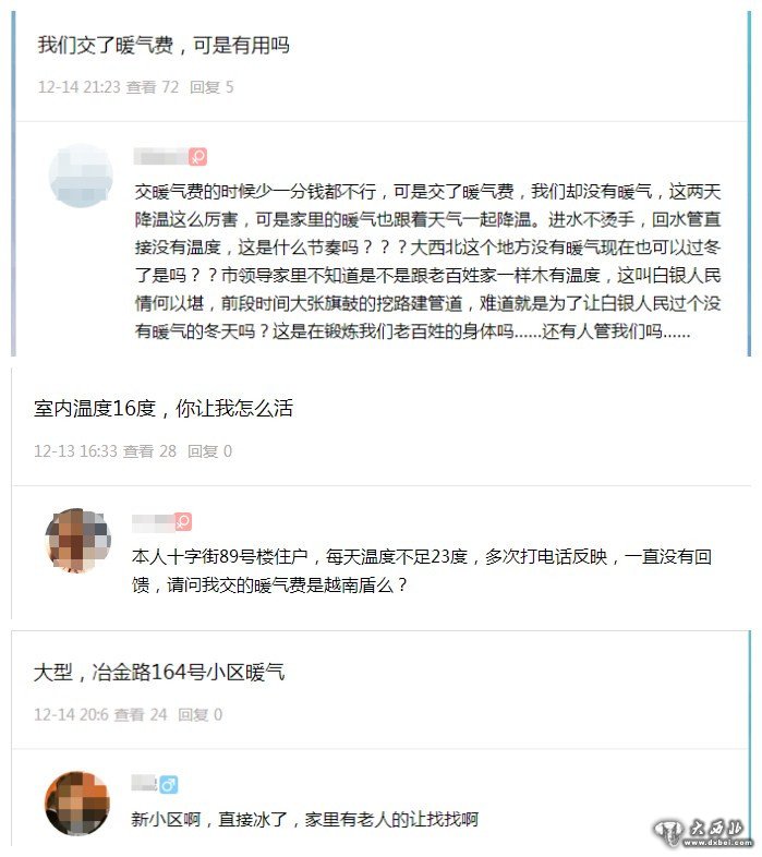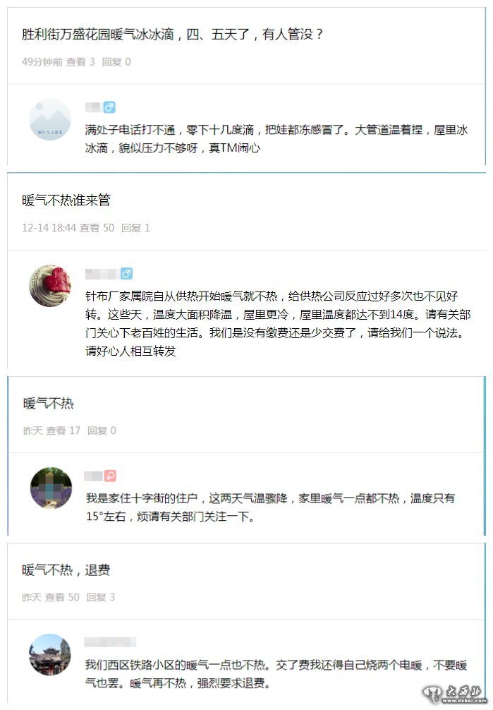 最近的暖气问题很让市民揪心,不止是王先生所在的针布厂家属院,据网友反映还有很多小区也是同样的情况,下面一起看看市民们是怎么说的: