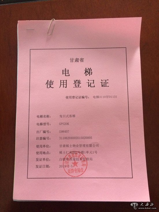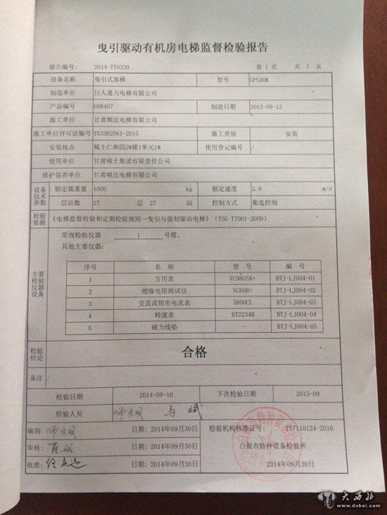 (稀土仁和园电梯合格证明)