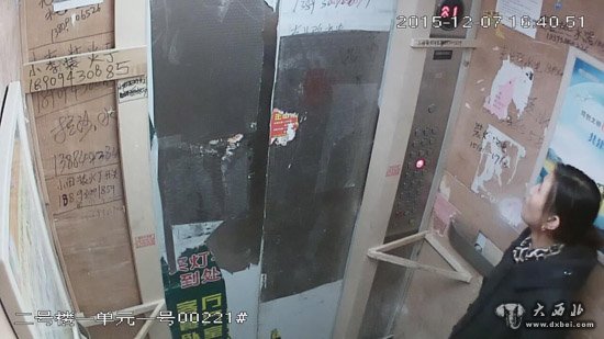 (老太太乘坐电梯视频监控截图)