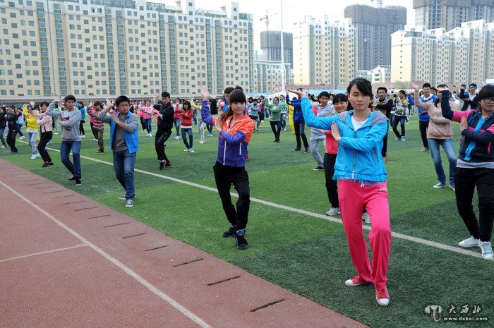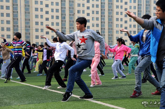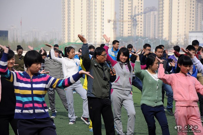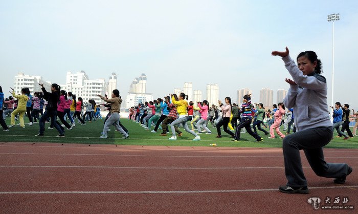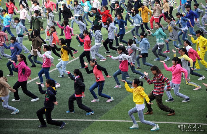 2014年4月1日上午,兰州文理学院的大学生在校园广场上演练了敦煌基础拳一路。