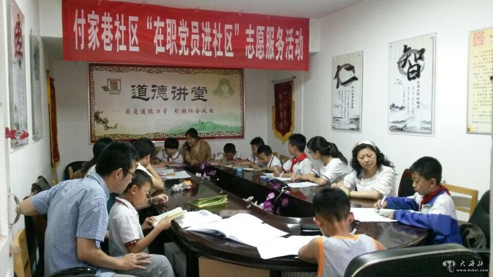 在付家巷社区会议室,志愿老师们亲切的与留守儿童们围坐畅谈,孩子们也将自己近期在学习和生活中存在的一些困难告诉了志愿者们。之后,志愿者们针对这些留守儿童出现的一些不懂的课程,结合自身经历答疑解惑,并告诉孩子们考试的主要目的是了解我们是否掌握了平常所学得知识,因此,没有必要过分担心。“只要同学们的知识掌握得牢固并保持轻松愉快的心情,认真复习,就一定能发挥出自己的水平。”另外,针对留守儿童在生活和学习中出现的自卑情况,志愿者们让他们相信自己身上的闪光点,并鼓励孩子们多参与班集体的管理事务,以树立其对生活、学习的信心。