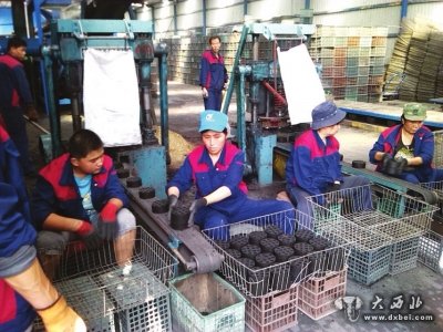 据记者了解,该厂除了研发出高效环保的“引火蜂窝煤”外,还同时研发了新型锅炉煤球和倍化型煤。倍化型煤大小与蜂窝煤差不多大小,不仅无污染而且非常耐烧,每块煤可以旺火燃烧六七个小时,是普通煤的数倍,另外成本较低,出厂价仅为0.5元,该煤湿重1.85公斤、干重0.73公斤。同时,该厂今年还引进了一种高效的专门燃烧蜂窝煤的锅炉,改变了以往锅炉只能燃烧块煤或煤渣的历史。为此他们专门生产了4公斤重的锅炉专用蜂窝煤。