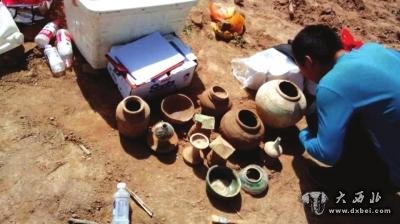 七八天前,在王景寨农场附近的一片荒地上,几台大型挖掘机正在开挖平整荒地,不料挖掘机竟然掘出陶罐样的东西,几名负责干活的民工马上就此情况上报武威公安、文物等部门。经甘肃省、武威市文物部门和武威市考古所工作人员鉴定,此处为汉代古墓,此古墓所涉面积较大,分为前室、后室。