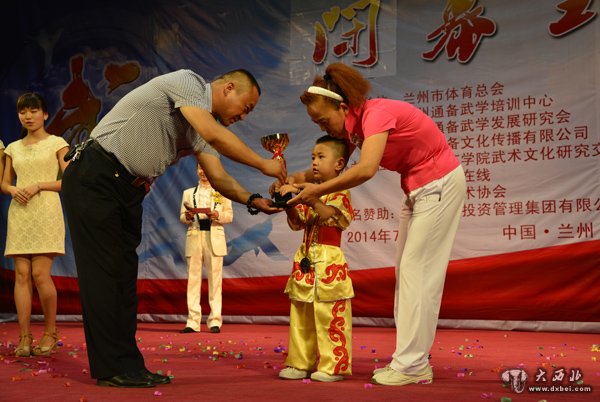 兰洋杯2014兰州国际友人武术交流大会为3岁小将颁奖。 贾笑云 摄