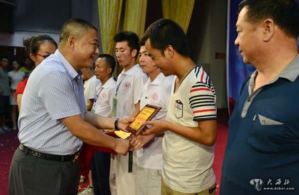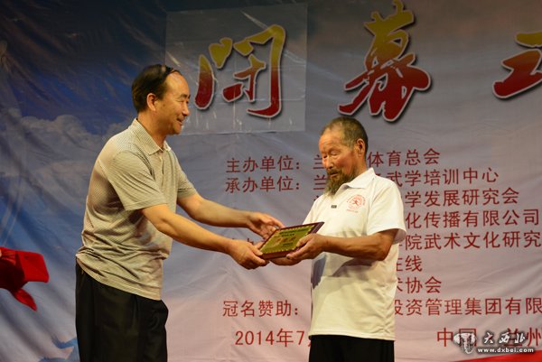 兰洋杯2014兰州国际友人武术交流大会为85岁老将颁奖。 贾笑云 摄
