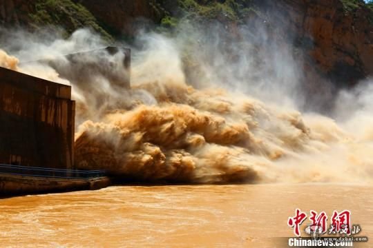 大西北网7月29日讯:据中新网消息,受洮河流域强降水天气影响,7月28日,刘家峡水库来水沙量急剧增加,上午9时洮河含沙量达到每立方米68.8千克,特大沙峰严重威胁着机组安全发电。刘家峡水电厂于9时12分开始异重流排沙,排沙期间,夹裹着大量泥沙的水流相继从泄水道、排沙洞、泄洪洞出口喷涌而出,场面壮观。