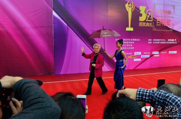 第23届中国金鸡百花电影节“星光大道”红毯秀——甘肃演员甘金霞等。 贾笑云 摄