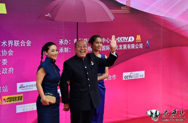 著名演员、中国影协主席李雪健在第23届中国金鸡百花电影节“星光大道”红毯秀。 贾笑云 摄