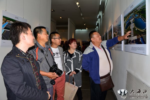 甘肃省摄影家们参观俯揽甘肃庆祝建国65周年摄影展。 贾笑云 摄