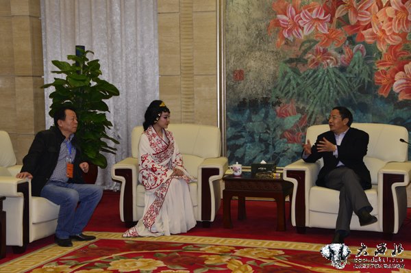 甘肃省委副书记欧阳坚与貂蝉扮演者座谈。 贾笑云 摄