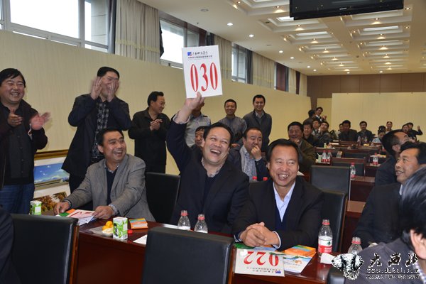 连辑部长在义拍活动上即兴挥笔书写了“龙马精神”4个大字。当场拍得16万元。 贾笑云 摄