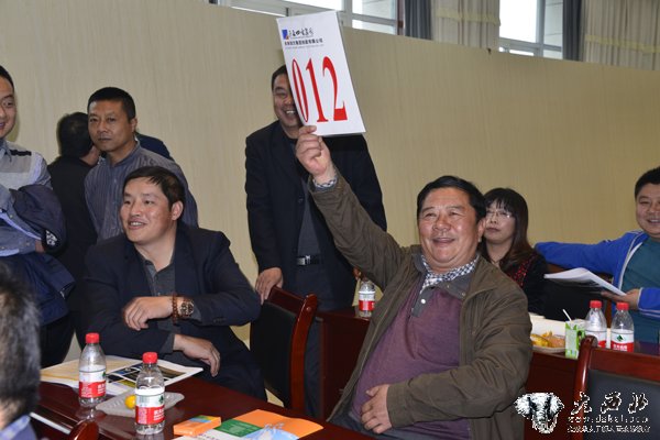 连辑部长在义拍活动上即兴挥笔书写了“龙马精神”4个大字。当场拍得16万元。